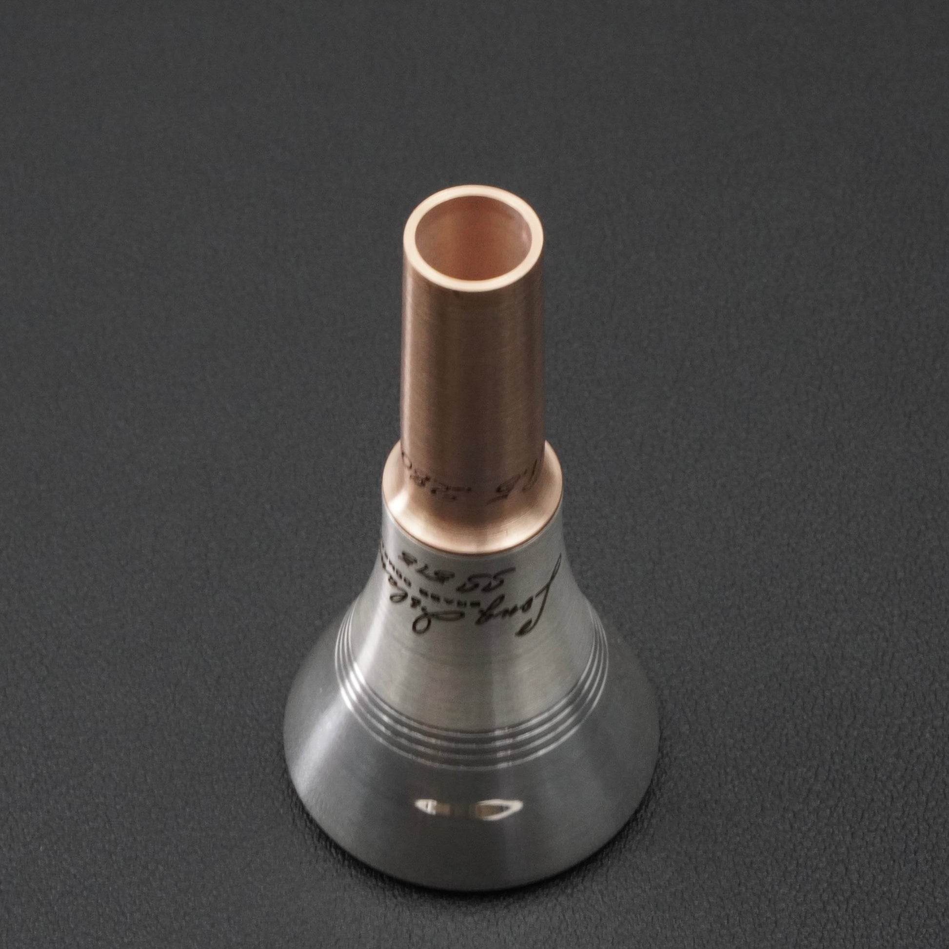 真鍮製ボディとブロンズ製バックボアの2ピース構造により、リム内径やカップ深さを選んだ後、バックボアで吹奏感を調整できる柔軟性を備えています。